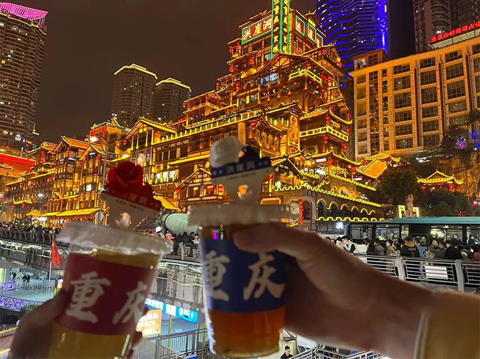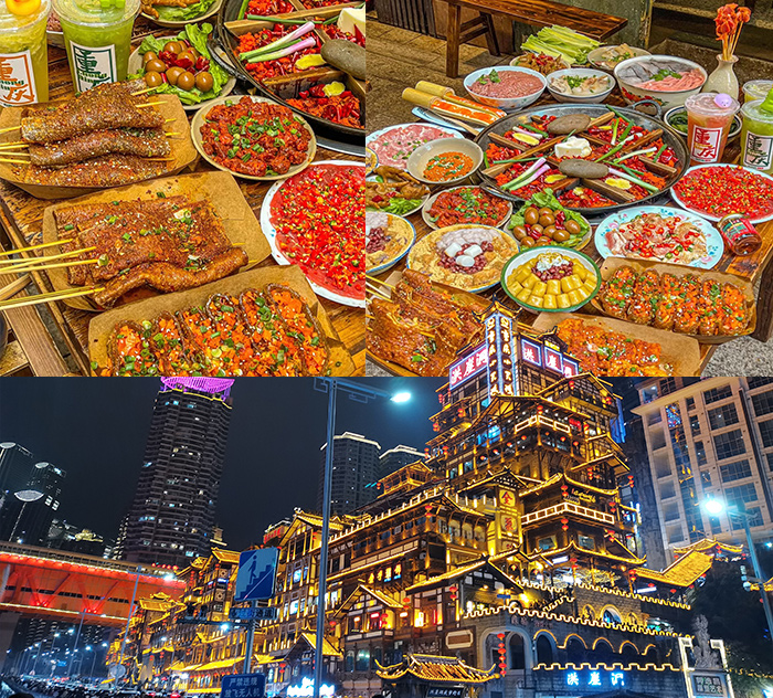 我们是从台北出发,飞机直达重庆江北国际机场,一出站就看到提前预约的已经在等我了。抵达重庆自然是要从解放碑开始解锁各色小吃,吃饱喝足后,可以在晚上8点后打卡洪崖洞,随后前往千厮门大桥拍摄洪崖洞全景。